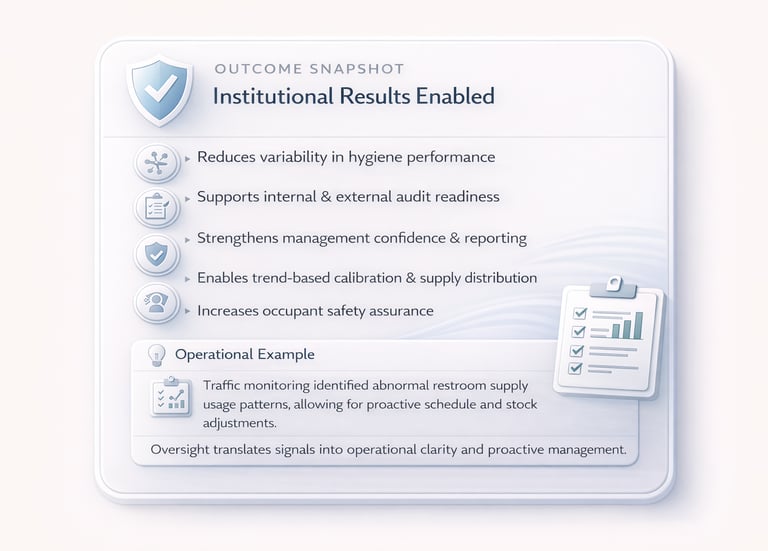 Structured environmental oversight reduces operational variability, supports audit readiness, strengthens staff safety confidence, and increases institutional accountability.