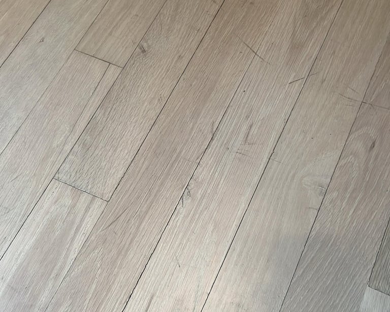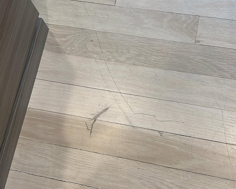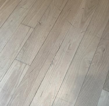This project began with the client expressing concern over the declining appearance of her wood flooring, including loss of uniformity, surface dullness, and visible wear in high-traffic areas.