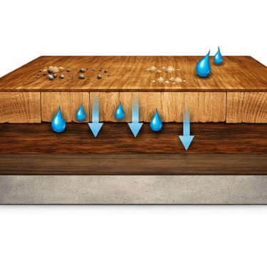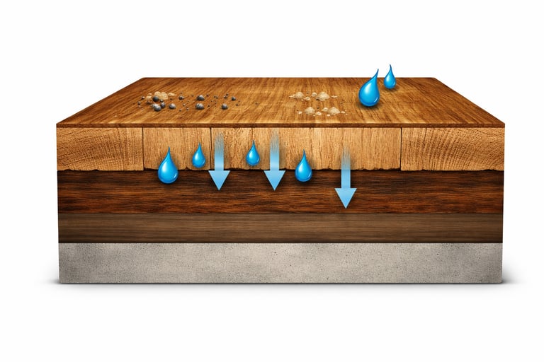 Structure of wood floor showing surface exposure and absorption into grain