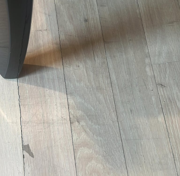 From a wood floor perspective, this condition reflects a combination of material exposure, wear, and maintenance factors.